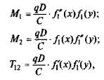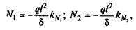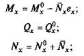 где α - коэффициент линейного расширения бетона; t01 > 0 и t02 > 0 - соответственно повышение температуры свода и затяжки. При определении распора от собственного веса панелей или элементов сборных сводчатых покрытий принимается k = 1. Для сводов со стрелой подъема f ≥ l/3 коэффициент k при всех нагрузках допускается не учитывать. 7.12 Изгибающие моменты М и нормальные силы N в поперечных сечениях складок или волн сводов определяются по формулам: