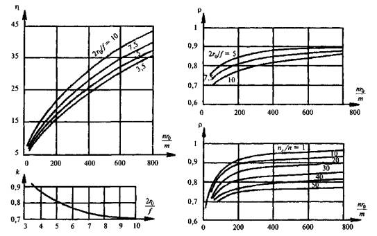 где I и А - момент инерции и площадь поперечного сечения складки или волны свода; At и Et - площадь поперечного сечения и модуль упругости стальных затяжек в пределах одной складки или волны свода; для железобетонных затяжек при нагрузках, действующих после их замоноличивания, следует учитывать работу бетона с трещинами; п - коэффициент, принимаемый в зависимости от подъема свода по табл. 7.3; Е' - модуль упругости бетона с учетом ползучести, а также податливости швов между панелями или элементами свода, определяемый по формуле
