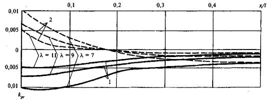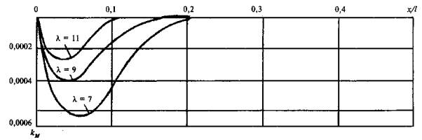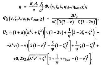 При сочетании нормальных и касательных напряжений необходимо соблюдать неравенство где σ0 и τ0 вычисляют по формулам (4.1) и (4.2). Для гладких коротких цилиндрических оболочек пролетом l интенсивность полной расчетной нагрузки не должна превышать величины