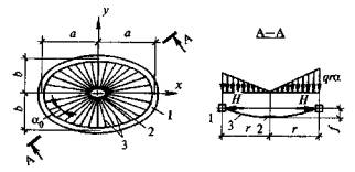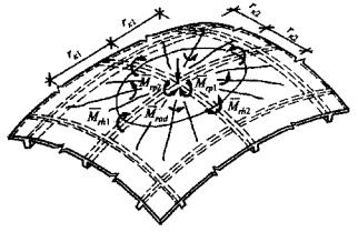 где b - расстояние между осями соседних ребер; А - площадь сечения, образованного одним ребром вместе с примыкающими частями тела оболочки шириной b; I - момент инерции того же сечения. Для ребристых