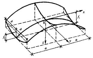 Срединная поверхность - геометрическое место точек в плите оболочки или складки, равноудаленных от ее нижней и верхней поверхностей.