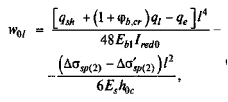 1 - уровень центра тяжести приведенного поперечного сечения Рисунок 9.8- Схема напряженно-деформированного состояния сечения оболочки при проверке образования трещин при действии изгибающего момента и нормальной силы 9.2.11 Расчет жесткости конструкций цилиндрических оболочек выполняют в соответствии с Руководством (приложение Б). В основе расчета лежит расчет длинных цилиндрических оболочек и призматических складок с учетом деформаций контура по методу В.З. Власова. В расчете учитывается появление поперечных трещин в бортовых элементах и оболочке и продольных трещин в оболочке или трещин в поперечных нефах. 9.2.12 Ширину раскрытия нормальных трещин определяют по формуле