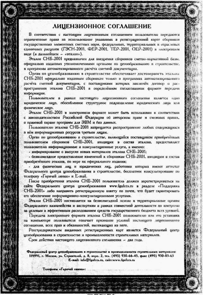 инвестиционно-строительной сферы В связи с поступающими обращениями Федеральный центр ценообразования в строительстве разъясняет. Сборники ГЭСН-2001, ФЕР-2001, ФССЦ-2001 и ФСЭМ-2001 в редакции 2000-2007 гг. утратили силу с начала 2008 года, т.е. после их издания в новой уточненной редакции (письмо Госстроя от 08.08.2007 № СК 2919/02). В новой редакции этих документов (более 200 самостоятельных официальных печатных изданий) учтены более 70 тысяч изменений, внесенных Госстроем в старую редакцию государственной сметно-нормативной базы. Практически каждая строка сборников ГЭСН-2001 и ФЕР-2001 содержит изменения и дополнения. Приказом Минрегиона России от 11.04.2008 № 44 введен в действие новый порядок разработки и утверждения нормативов в области сметного нормирования и ценообразования в сфере градостроительной деятельности. Этот порядок зарегистрирован Минюстом России как нормативный правовой акт. Порядком регламентирована процедура введения в действие сметных нормативов федерального, территориального и отраслевого уровней, а также создание Реестра нормативов в области сметного нормирования и ценообразования в сфере градостроительной деятельности, действующих на территории Российской Федерации. В октябре т.г. в Реестр будут включены сметные нормативы федерального уровня, состоящие из сборников ГЭСН-2001, ФЕР-2001, ТЕР-2001, ФССЦ-2001 и ФСЭМ-2001, изданных в начале 2008 года в новой, уточненной редакции. С 01.01.2009 в субъектах Российской Федерации, сборники ТЕР-2001 которых не будут включены в Реестр, до их приведения в соответствие с государственными сметными нормативами будут действовать сборники ФЕР-2001. Редакция сборников федеральной базы 2000-2007 гг. продолжает действие лишь для определения стоимости работ по объектам, строительство которых начато до марта 2008 г. (т.е. по уже утверждённой сметной документации). Для пользователей сметных программ использование электронного варианта сметно-нормативной базы новой редакции подтверждается регистрационной картой (образец прилагается), являющейся единственным признаком достоверности содержимого баз данных для использования в автоматизированных комплексах сметных расчётов. В конце 2008 года начнутся контрольные мероприятия по проверке достоверности содержимого сметных программ официальной редакции государственных сметных нормативов. О выявленных фактах искажения официальных данных в составе автоматизированных программ сметных расчётов будут информироваться соответствующие контрольно-финансовые и правоохранительные органы. Приложение: на 1 л. в 1 экз.