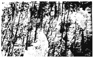 Рис. 6 Деформация вертикальной связи колонн из плоскости. Рис. 7. Разрыв уголка решетки тормозной фермы подкрановой балки. Рис. 8 Повреждения решетки сварных колонн в результате механических воздействий. 2.25. Повреждения от физических воздействий возникают в результате близкого расположения элементов конструкций к источникам тепловыделения, а также при воздействии отрицательных температур на углеродистые стали с повышенным содержанием фосфора и серы. 2.26. Повреждения от химических воздействий проявляются в различных видах коррозии стальных, бетонных и железобетонных конструкциях и являются одним из существенных факторов преждевременного износа строительных конструкций. 2.27. Процесс разрушения материалов, вызванный действием на них различных химических веществ, называется коррозией. 2.28. Скорость коррозии зависит от окружающей внешней среды, в которой расположена конструкция. 2.29. Среда, под воздействием которой происходит коррозия материалов, приводящая к преждевременному износу или разрушению конструкций и частей зданий, называется агрессивной. 2.30. Внешняя среда может быть газообразной, жидкой или твердой. 2.31. Для отдельных групп агрессивных сред агентами, вызывающими коррозию строительных конструкций, могут быть: 2.31.1. Для жидких сред - растворы кислот, щелочей и солей, органические жидкости (масла, растворители и др.). 2.31.2. Для газообразных сред - повышенная или высокая влажность воздуха, наличие в воздухе кислых или окисляющих газов (особенно сернистых) в сочетании с повышенной или высокой влажностью и паров с высокой температурой на поверхности различных конструкций. 2.31.3. Для твердых сред - различные агрессивные пыли, аэрозоли, дым в сочетании с высокой влажностью. 2.32. Коррозия может быть местная, когда под воздействием местных агрессивных факторов поражаются отдельные узлы или часть конструкции на участках сравнительно небольшой длины, и равномерная, когда конструкции одинаково разрушаются по всей поверхности на значительной длине здания. Особенно опасна язвенная коррозия. 2.33. Степень агрессивного воздействия газовых сред определяется их видом, концентрацией, температурой и относительной влажностью воздуха, а также скоростью обмена агрессивной среды. 2.34. Скорость коррозии в воздушной среде с небольшой относительной влажностью сравнительно невелика и находится в пределах 0,05-0,07 мм в год. Такая коррозия не опасна, так как толщины элементов стальных конструкций к концу срока их службы уменьшаются незначительно. 2.35. Скорость коррозии в воздушной среде в неблагоприятных условиях протекает быстро и достигает до 0,1 мм и более в год. Такая коррозия опасна для конструкций, так как она значительно уменьшает их толщины и площади сечений, в результате чего они быстро выходят из строя. 2.36. Степень агрессивного воздействия жидких сред зависит от их вида, концентрации и температуры, а для растворов кислот, щелочей и солей - от водородного показателя (РН). 2.37. Степень агрессивности твердых сред зависит от их вида, интенсивности и гигроскопичности агентов, а также от влажности воздуха. 2.38. Повреждения от атмосферных воздействий возникают в результате перегрузки покрытий снеговой нагрузкой и значительными отложениями производственной пыли вблизи источников их выделения, а также намокания стен из-за малого выноса карниз