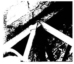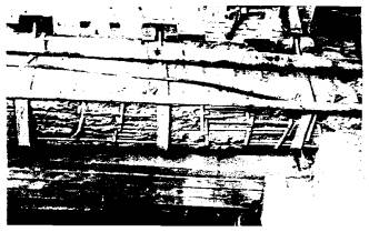 Рис. 4 Деформация нижнего пояса из плоскости фермы и отсутствие соединительных прокладок между уголками пояса.