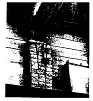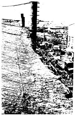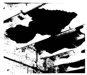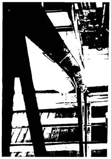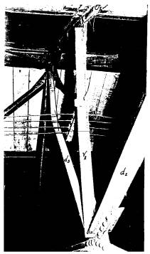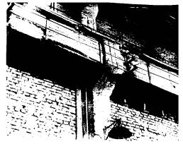 Рис. 2. Разрушение карнизной части здания. Рис. 3. Деформация верхнего пояса и раскоса из плоскости в клепаной ферме.