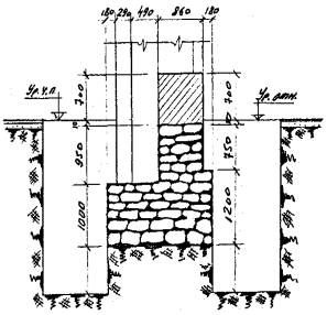 Широко распространенный тип фундамента. Выполнялся под столбы и колонны при сравнительно небольших нагрузках на фундаменты и при основаниях с высокой несущей способностью. Выполнялись из различных материалов. |