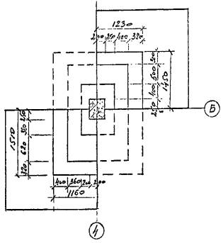 Центр тяжести фундаментов не совмещен с осью стены, столба или колонны. Уступы с противоположных сторон различны по своей величине. Проектировались для эксцентрично нагруженных несущих конструкций. |