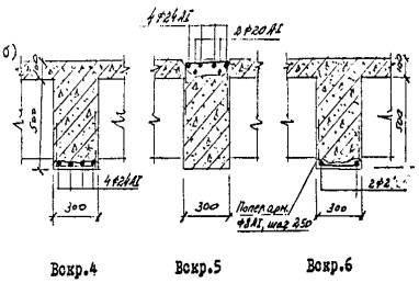 Применялись под колоннами, возводимых на слабых грунтах, для обеспечения жесткости здания от неравномерных осадок грунтов. Выполнялись в монолитном железобетоне. Колонны располагались в местах пересечения лент. Встречаются в основном в многоэтажных зданиях старой застройки. |