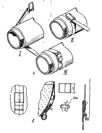 Рис. 3. Стягивающий пояс (а) и бандаж (б): I-III - последовательность операций; 1 - пряжка; 2 - бандаж Пояса или бандажи можно заменить кольцами