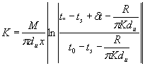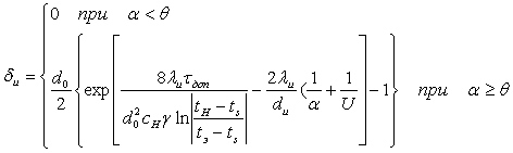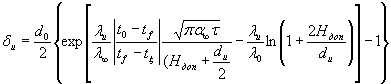 5.9. Для аварийного режима остывания остановленного нефтепровода оптимальную толщину теплоизоляции (δu) определяет исхода из величины допустимого времени остановки трубопровода (τдоп) при условии недопустимости остывания нефти ниже температуры эксплуатации tэ: