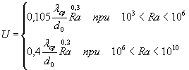 λср - коэффициент теплопроводности нефти при ts = tcp ккал/м.ч.град; vср - кинематическая вязкость нефти при ts = tcp Ст; βcp - коэффициент объемного расширения нефти, град -1; Ra - число Релея; q - ускорение силы тяжести, q = 9,81 м/с2; tH, tB, tcp - начальная температура нефти остановленного трубопровода, температура воздуха и средняя расчетная температура нефти, соответственно, °С. 5.10. Расчет оптимальной толщины теплоизоляции по трансцендентным уравнениям (5), (15), (18) осуществляют методом последовательных приближений, полагая в первом приближении du = d0. Как показала практика, двух итераций бывает вполне достаточно. Исходные расчетные параметры теплообмена трубопровода с окружающей средой можно определять в соответствии с СНиП 2.01.01-82 "Строительная климатология и геофизика". 5.11. При выборе толщины теплоизоляции трубопроводов по нескольким ограничивающим условиям (5), (15) - (18) можно руководствоваться общим правилом, полагая, что в качестве оптимальной толщины теплоизоляции принимают наибольшую толщину теплоизоляции, определяемую при последовательном применении ограничивающих условий (5), (15) - (18). 5.12. При Транспортировке в зимних условиях высоковязких парафинистых нефтей с температурой эксплуатации tэ не ниже от плюс 10 до плюс 25°С применение одной теплоизоляции является недостаточным и обязательно необходим дополнительный обогрев нефти. В качестве источников тепла можно рекомендовать электрические ленточные поверхностные нагревательные элементы отечественного или импортного производства, которые по сравнению c электрическими кабелями, паропроводами и другими нагревательными системами обладают большей экономичностью, надежностью в работе и удобством в обслуживании. Требуемую мощность