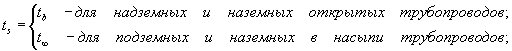 где λо - коэффициент теплопроводности грунта в ореоле оттаивания или промерзания вокруг трубопровода, ккал/м.ч.град; Hдоп - допустимая мощность ореола оттаивания или промерзания грунта в основании трубопровода, м. 5.8. Теплоизоляция для трубопроводов подземной и назем ной систем прокладок не нужна, если прогнозируемая мощность (Ндоп) допустимого ореола оттаивания или промерзания грунта в основании трубопровода удовлетворяет, следующему неравенству: