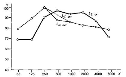 L'T,0KT - уровень октавы маскирующего предела при ношении средств защиты органов слуха.