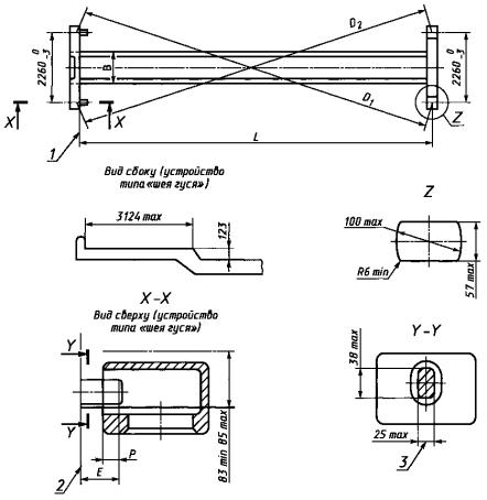 С.3.5 Длина контейнеров, размеры и допуски шасси с устройством типа «шея гуся» для размещения контейнеров приведены в таблице С.4 и на рисунке С.3.