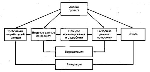Рисунок 3 - Процесс проектирования и разработки ИСО 9001:2000 Системы менеджмента качества. Требования 7.3.7 Управление изменениями проекта и разработки Изменения проекта и разработки должны быть идентифицированы, а записи должны поддерживаться в рабочем состоянии. Изменения должны быть проанализированы, верифицированы и подтверждены соответствующим образом, а также одобрены до внесения. Анализ изменений проекта и разработки должен включать оценку влияния изменений на составные части и уже поставленную продукцию. Записи результатов анализа изменений и любых необходимых действий должны поддерживаться в рабочем состоянии (4.2.4). 7.3.7 Управление изменениями проекта и разработки в органе местного самоуправления В процессе предоставления услуги орган местного самоуправления должен обеспечить пересмотр и актуализацию характеристик услуги (на основе полученного опыта, например, претензий потребителей/ граждан). Орган местного самоуправления должен установить процедуру идентификации записей изменений проекта и разработки каждого процесса, полученных результатов и выполненных оценок. Анализ изменений проекта и разработки должен включать в себя оценку влияния изменений на процессы органа местного самоуправления, а также на удовлетворенность заинтересованных сторон и потребителей/граждан. Управление изменениями обычно подразумевает осуществление всех необходимых стадий процесса проектирования и разработки от планирования до валидации изменений проекта. ИСО 9001:2000 Системы менеджмента качества. Требования 7.4 Закупки 7.4.1 Процесс закупок Организация должна обеспечивать соответствие закупленной продукции установленным требованиям к закупкам. Тип и степень управления, применяемые по отношению к поставщику и закупленной продукции, должны зависеть от ее воздействия на последующие стадии жизненного цикла продукции или готовую продукцию. Организация должна оценивать и выбирать поставщиков на основе их способности поставлять продукцию в соответствии с требованиями организации. Должны быть разработаны критерии отбора, оценки и повторной оценки. Записи результатов оценивания и любых необходимых действий, вытекающих из оценки, должны поддерживаться в рабочем состоянии (4.2.4). 7.4 Закупки в органе местного самоуправления Орган местного самоуправления должен обеспечить соответствие процесса закупок законодательным и обязательным требованиями к закупкам товаров и/или услуг. 7.4.1 Процесс закупок Процесс отбора поставщиков органа местного самоуправления должен быть открытым и доступным для заинтересованных сторон, должен быть опубликован в печати и должен содержать необходимую информацию о закупках (см. 7.4.2). Орган местного самоуправления должен идентифицировать требования для закупаемых товаров и услуг. Орган местного самоуправления должен довести до сведения всего персонала организации, что выполнение поставщиками установленных требований и ответственность поставщиков напрямую зависят от технических требований и условий, установленных в договорах или соглашениях. Для официального одобрения новых поставщиков могут быть применены испытательный срок и/или экспериментальная схема. Орган местного самоуправления должен определить тип и степень управления, применяемые к поставщикам и их товарам/услугам, которые 