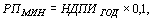 где: РПМИН - минимальный размер разового платежа за пользование недрами, тыс. руб.; НДПИГОД - сумма налога на добычу полезных ископаемых в расчете на среднегодовую проектную мощность добывающей организации (далее - среднегодовая сумма налога на добычу полезных ископаемых), тыс. руб.