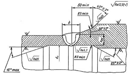 заподлицо с наружной поверхностью и шероховатостью не ниже Rа 6,3 для проведения ультразвукового контроля.