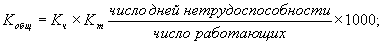 • общий коэффициент (Кобщ) - показатель трудовых потерь в расчете на 1000 работающих: