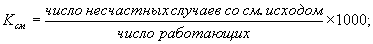 • частоты травматизма с летальным исходом на 1000 работающих в год (Ксм):