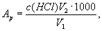 где с (HCl) - точная молярная концентрация раствора соляной кислоты (см. 5.2.6.4), моль/дм3; V1 - объем анализируемой пробы воды, взятый для титрования по 5.3.1, см3; V2 - объем раствора соляной кислоты, израсходованный на титрование до рН 8,3 (см. 5.3.1 или 5.4.1), см3. 5.5.2. Общую щелочность АТ, ммоль/дм3, при определении по способу 1 рассчитывают по формуле