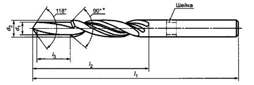 Рисунок 2 - Сверла типа 2 * Допускается изготовление сверла с углом 120°. Таблица 2 Размеры в миллиметрах
