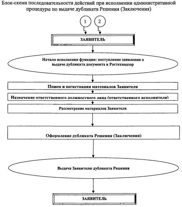 Приложение 11Описание последовательности и состава административных действий Ростехнадзора при осуществлении административной процедуры по выдаче Решения1. Последовательность административных действий Административная процедура по выдаче Решений включает административные действия в следующей последовательности: - прием и регистрация материалов Заявителя; - назначение ответственного должностного лица; - рассмотрение материалов Заявителя; - принятие решения о выдаче Решения либо о мотивированном отказе в выдаче этого документа; - оформление Решения; - выдача заявителю Решения - внесение информации выдаче документа в соответствующий информационный ресурс (журнал, банк данных). 2. Состав административных действий