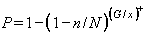 21. Если ядерные материалы представлены в форме учетных единиц, целостность которых при нахождении в ЗБМ в межбалансовом периоде обеспечена их конструкцией (например, неразборные тепловыделяющие сборки или диски, блочки, изделия с ядерными материалами, покрытые оболочками, в результате чего ядерные материалы не могут быть извлечены из них без нарушения целостности оболочек) и может быть подтверждена (например, визуальным осмотром, сравнением образов гамма - или ультразвукового сканирования швов сварки), то для этих ядерных материалов при расчете объема выборки для инспекционных измерений следует использовать значения вероятностей обнаружения, аналогичные применяющимся к ядерным материалам с УИВ. 22. Перед расчетом объема выборки необходимо рассчитать величину отношения G/x. 23. Расчет объема выборки (n) осуществляется следующим образом (см. пример расчета в приложении N 4): при величине G/x£N, объем выборки (n) рассчитывается по формуле