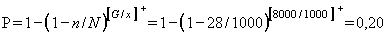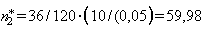 при величине G/x>N, объем выборки (n) рассчитывается по формуле