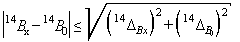 где 14DАi и 14DВi - абсолютные погрешности величин 14Аi и 14Вi рассчитанные программой IMCA при проведении градуировки.