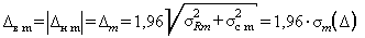 В.6 Оценка показателя точности МВИ В.6.1 Верхнюю (Dв.m) и нижнюю (Dн.m) границы, в которых погрешность результата измерений (для массовой доли U235, соответствующей массовой доле U235 в m-ом СО) находится с принятой вероятностью Р = 0,95, рассчитывают по формуле