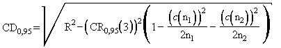 б) В случае, если одна лаборатория получила свой результат измерений как среднее арифметическое (n1=3), а другая - как медиану (n2=6), критическая разность CD0,95 равна