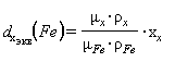 где Dх - разница между толщинами стенок контейнеров с ураном, использовавшихся для градуировки и контейнера с анализируемым ураном, мм. 12.1.4 При измерениях м.д. 235U в уране, находящегося в контейнерах или упаковках из других материалов, их поглощающие свойства и соответственно толщину характеризуют эквивалентной толщиной по стали, т.е. такой толщиной стали, которая ослабляет гамма-излучение с энергией ~ 185,7 кэВ в такой же степени, как и используемый материал. 12.1.5 Эквивалентную толщину по стали контейнеров или упаковок из других материалов рассчитывают по формуле