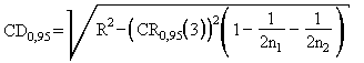 где Е3 и Е4 - третий и четвертый члены упорядоченного ряда, %. 12.3 Проведение проверки приемлемости результатов измерений, полученных в условиях воспроизводимости 12.3.1 При необходимости (например, в случае, если результаты измерений проверяет контролирующий орган, или, если результат измерений подвергается сомнению) проводят проверку приемлемости результатов измерений, полученных в условиях воспроизводимости (двумя лабораториями, разными приборами одного типа). При этом анализируемые пробы (анализируемые образцы) для выполнения измерений должны быть одними и теми же. Число параллельных измерений в каждой лаборатории должно быть равным 3. Каждая лаборатория проводит проверку приемлемости своих результатов измерений по 12.2 и получает результат измерений в условиях повторяемости. 12.3.2 Совместимость окончательных результатов, полученных двумя лабораториями, проверяют, сравнивая относительное расхождение между двумя результатами измерений с критической разностью CD0,95, которую рассчитывают с использованием следующих алгоритмов а) В случае, если обе лаборатории получили свой результат измерений как среднее арифметическое (n1=n2=3), критическая разность CD0,95 равна