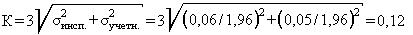 Поскольку все погрешности документируются и рассчитываются при 95% доверительной вероятности, то для получения среднеквадратических погрешностей значения 0,06 и 0,05 должны быть уменьшены в 1,96 раза. Таким образом,