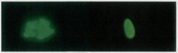 После проведения амплификации пробы готовы для проведения электрофореза в агарозном геле. 5.3.3.3. Проведение электрофореза в агарозном геле Приготовление агарозного геля Для приготовления 2%-й агарозы необходимо к 1 г агарозы добавить 50 мл буфера ТВЕ и тщательно перемешать. Полученный раствор помещают в микроволновую печь (на 2 - 5 мин, в зависимости от мощности печи - следить за интенсивностью кипения суспензии!) или кипятят на водяной бане 15 мин до полного растворения агарозы. Расплавленную агарозу охлаждают до 56 °С и добавляют 5 мкл бромистого этидия (концентрация 10 мг/мл), тщательно перемешивают. Расплавленную агарозу с бромистым этидием разливают в подготовленную форму. Толщина геля 0,5 - 0,7 см. Через 30 - 40 мин удаляют гребенку. Готовый гель можно использовать сразу, можно хранить в 1х буфере в холодильнике при 4 °С . 5.3.3.4. Проведение электрофореза Смешивают в отдельной пробирке 2 мкл буфера для нанесения и 10 мкл реакционной смеси. Вносят смесь в лунки геля. (Можно использовать соотношение буфер-реакционная смесь - 2 : 8.) В одну из лунок (чаще в крайнюю) вносят маркер молекулярной массы (100 - 100 Вр). Помещают заполненный гель в камеру для электрофореза, заполненную буфером 1 × ТБЕ. Толщина слоя буфера над поверхностью геля примерно 2 - 3 мм. В режиме постоянного напряжения 100 V электрофорез длится примерно 70 - 90 мин. Гель (без формы) помещают на фильтр трансиллюминатора и просматривают в проходящем ультрафиолетовом свете. При оценке результата ПЦР ожидаемый размер продукта (относительно маркера): для С. parvum - 400 - 451 в. р., для Giardia lamblia - 161 в. p. Документируют результат электрофореза - либо на фотопленку "Микрат Изопан" (изопанхроматическая фотопленка чувствительностью 3 ед. ГОСТ, фотографическая широта 10, разрешение - 300 линий/мм), либо при помощи гельдокументирующей системы. Фотокопия геля должна быть приложена к отчету по идентификации (при цифровой съемке распечатывается на принтере с разрешением не менее 300 dpi). Приложение 1