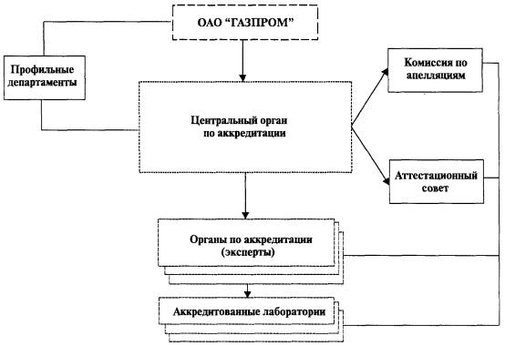 3.18 подтверждение соответствия: Процедура, в результате которой документально удостоверяется соответствие продукции, процессов (методов) производства, эксплуатации, хранения, перевозки, реализации и утилизации, работ, услуг или иных объектов техническим регламентам или положениям стандартов или условиям договоров. [Федеральный закон "О техническом регулировании", статья 2] 3.19 реестр САЛГАЗ: регистрационный документ, содержащий информацию о документах САЛГАЗ, об экспертах по аккредитации и аккредитованных лабораториях. 3.20 система аккредитации: Система, обладающая собственными правилами процедуры и управления для осуществления аккредитации. 3.21 эксперт по аккредитации: Сотрудник ОА, признанный в установленном порядке компетентным для участия в работах по аккредитации лабораторий. В настоящем стандарте применены следующие сокращения: АЛ - аккредитованные лаборатории; АС - аттестованные смеси; MBИ - методики выполнения измерений; НД - нормативные документы; СИ - средства измерений; СО - стандартные образцы; ЦОА - центральный орган по аккредитации. 4 Общие положения4.1 САЛГАЗ функционирует с целью: - обеспечения потребностей дочерних обществ и организаций ОАО "Газпром", а также потребителей газа, газового конденсата, нефти и продуктов их переработки в получении достоверных сведений о составе и свойствах веществ, материалов и продукции, добываемых, производимых и используемых дочерними обществами и организациями ОАО "Газпром"; - обеспечения потребностей дочерних обществ и организаций ОАО "Газпром" в получении достоверных сведений о состоянии окружающей среды в зоне размещения объектов ОАО "Газпром"; - обеспечения доверия к результатам деятельности АЛ дочерних обществ и организаций ОАО "Газпром"; - создания условий для признания на национальном и международном уровнях результатов деятельности аккредитованных лабораторий дочерних обществ и организаций ОАО "Газпром" в их областях аккредитации. 4.2 Аккредитация в САЛГАЗ основывается на следующих основных принципах: - добровольность, обеспечивается возможностью аккредитации в САЛГАЗ любой лаборатории дочернего общества (организации) ОАО "Газпром", добровольно изъявившей желание получить оценку компетентности в заявленной области аккредитации путем подачи заявки в ОА и добровольно пожелавшей следовать установленным в САЛГАЗ правилам; - открытость (прозрачность), обеспечивается общедоступностью информации о правилах, процедурах и критериях аккредитации в САЛГАЗ; - компетентность, обеспечивается участием в работах по аккредитации лабораторий экспертов по аккредитации с привлечением, при необходимости, квалифицированных специалистов в конкретных областях знаний и деятельности; - недопущение дискриминации и принятия пристрастных решений, обеспечивается применением при аккредитации единых критериев аккредитации, которые приведены в разделе 6. 4.3 САЛГАЗ располагает собственными правилами для осуществления аккредитации и представляет собой совокупность участников, действующих в различных сферах оценки соответствия. 4.4 Аккредитацию лабораторий на техническую компетентность осуществляют органы по аккредитации, которые формируются на базе организаций ОАО "Газпром", имеющих опыт работы в области измерений, стандартизации и метрологического обеспечения аналитическо