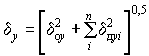где DXр - наибольшее отклонение внешней влияющей величины от нормального значения. где n - количество влияющих величин; dдy - дополнительная погрешность от i-й влияющей величины. 14.1.5 Погрешность параметра (у), определяемого косвенным методом, который связан функциональной зависимостью с параметрами (уi) (например, температурой, давлением, компонентным составом) y = F(y1, у2 ..... уn), рассчитывают по формуле