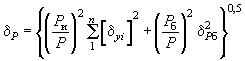 где n - количество последовательно соединенных измерительных преобразователей или СИ, используемых для измерения абсолютного давления; dyi - погрешность i-го измерительного преобразователя или СИ с учетом дополнительных погрешностей. Погрешности измерений абсолютного давления при применении преобразователя избыточного давления рассчитывают по формуле