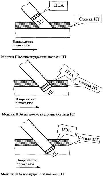 За значение Ду принимают равное или ближайшее большее к D значение из стандартного ряда условных проходов УЗПР. 10.2.3 Все внутренние части УЗПР, имеющие контакт с газом, должны быть изготовлены из материала, нейтрального к природному газу, его конденсатам и сопутствующим компонентам (метанол, гликоль и др.). Все наружные части УЗПР должны изготавливаться из коррозионно-стойкого материала или иметь покрытие, стойкое к атмосферным воздействиям. 10.2.4 Проверку установки нуля шкалы УЗПР проводят в соответствии с его эксплуатационной документацией. Для этого УЗПР изолируют от потока газа и проводят измерение. При отсутствии движения газового потока УЗПР должен регистрировать скорость потока газа от каждого ПЭА, не превышающую указанную изготовителем в эксплуатационной документации. Если это значение не указано, то проверяют, чтобы средняя скорость потока газа, измеренная за 300 с, каждым ПЭА не превышала 6 мм/с. Коррекцию показаний УЗПР допускается производить только при полной стабилизации давления и температуры газа во внутренней полости УЗПР. В полевых условиях данная процедура может проводиться только при условии, что течение газа через УЗПР отсутствует, а температура газа стабилизирована. 10.2.5 Монтаж УЗПР производится в соответствии с его эксплуатационной документацией. Для этого могут привлекаться специалисты изготовителя УЗПР. УЗПР устанавливают на заранее определенном участке газопровода с соблюдением требований раздела 9. Перед установкой УЗПР в ИТ необходимо удостовериться, что направление потока, указанное на фирменной табличке УЗПР, соответствует направлению потока газа в ИТ. При установке необходимо следить за тем, чтобы не допускалось повреждение и сдавливание кабелей, идущих от датчиков. Внутренняя поверхность УЗПР должна оберегаться от каких-либо повреждений. 10.2.6 УЗПР устанавливают на горизонтальном, вертикальном или наклонном прямом участке ИТ. При измерении расхода газа, содержащего загрязнения или конденсат, пространственное положение УЗПР выбирают таким образом, чтобы обеспечить наименьшую вероятность загрязнения или скопления конденсата в его проточной части и на ПЭА. Для этого УЗПР располагают так, чтобы ПЭА или точка отражения акустического импульса от стенки УЗПР не оказались на дне трубопровода. 10.2.7 Электромонтаж оборудования УЗПР проводят в соответствии с указаниями в его эксплуатационной документации. При необходимости электронные блоки УЗПР выносят в защитные щитовые помещения с соблюдением требований безопасности, принятых в ОАО "Газпром". 10.2.8 После монтажа проводится проверка герметичности ИТ, УЗПР и соединительных линий. 10.2.9 Во время эксплуатации УЗПР особое внимание должно быть обращено на обеспечение чистоты поверхности ПЭА. Если в газовом потоке предполагается наличие инородных веществ, рекомендуется установка фильтров на расстоянии не ближе 25D до УЗПР. 10.3 Средства измерения давления10.3.1 Абсолютное давление газа Р измеряют либо непосредственно, либо путем суммирования измеренных величин избыточного (статического) Pи и атмосферного давлений Pб. 10.3.2 Избыточное и абсолютное давления измеряют с помощью измерительных преобразователей давления любого типа. Метрологические характеристики СИ давления в условиях их эксплуатации должны обеспечивать измерение абсолютного дав