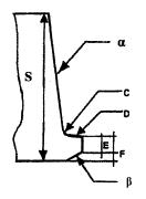 Рис. 10.2.1 Регламентируемые варианты обработки торцов стыкуемых разнотолщинных элементов: S1 - толщина стенки тонкостенного элемента; S2 - толщина свариваемого торца толстостенного элемента; S3 - толщина стенки толстостенного элемента. 10.2.1.4 При разнотолщинности S2/S1 более 1,5 (для схем А и Б - при S3/S1 более 1,5) соединение элементов выполняется путем вварки между ними катушки промежуточной толщины шириной не менее 250 мм или переходных колец, изготовленных в заводских условиях. Для соединений "труба + деталь", выполняемых согласно схеме "А" на монтаже трубопроводов НПС, резервуарных парков и других сооружений данное требование должно выполняться при разнотолщинности S3/S1 более 2,0. 10.2.1.5 При выборе конструктивного решения по стыковке элементов разной толщины согласно схемам Б, В и Г (рис. 10.2.1) должна производиться проверка прочности по следующей формуле: