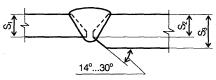 12.3.7.3 Тип сварного шва: - стыковой шов - СШ; - угловой шов - УШ. Сварные соединения с разными типами шва не могут входить в одну группу однотипности. 12.3.7.4 Тип сварных соединений: - стыковые - С; - угловые - У; - тавровые - Т; - нахлесточные - Н. В одну группу могут быть объединены угловые, тавровые и нахлесточные соединения. 12.3.7.5 Вид и номинальный угол разделки кромок свариваемых деталей. В одну группу допускается объединять сварные соединения с одной из следующих характеристик подготовки кромок, представленных в таблице 12.9. Таблица 12.9 - Типовые формы разделки кромок сварных соединений нефтепроводов
