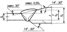 Таблица 5.2.4 - Требования к ширине облицовочного слоя шва при двухсторонней сварке под флюсом