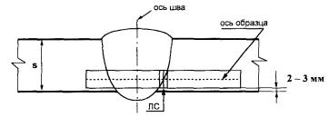 3.2 Вырезку и изготовление образцов следует производить таким образом, чтобы одна из чистовых поверхностей каждого образца (после окончательной обработки) располагалась на расстоянии 2-3 мм от внутренней поверхности трубы. При вырезке образцов из соединений с толщиной основного металла 11 мм и 6 мм допускается наличие необработанного основного металла на двух поверхностях образца. Надрез наносят перпендикулярно поверхности трубы (см. схему на рис. 3.2).