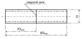 4.2 Перед испытанием трубчатых образцов на растяжение следует удалить усиление сварного шва. В формулу расчета временного сопротивления разрыву должна быть введена площадь сечения трубы вне сварного шва. Концы трубчатого образца перед испытанием могут быть сплющены, если этого требует конструкция разрывной машины. Расстояние от оси шва до начала сплющиваемого участка должно быть в данном случае не менее двух диаметров (2D) трубы. Временное сопротивление разрыву при растяжении трубчатых образцов должно быть не ниже нормативного значения временного сопротивления разрыву, регламентированного стандартом или техническими условиями на поставку труб.