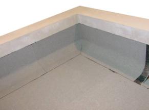 Полоса усиления приваривается феном горячего воздуха. Устройство примыкания к парапету высотой до 450 мм.