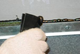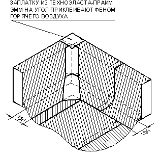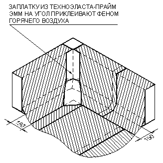 Для формирования качественного торцевого нахлеста, в конце рулона отрезают уголок материала. Размер уголка 150 мм в длину и 80-100 мм по ширине.