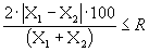 Х1, Х2 - результаты измерений в двух разных лабораториях, мг/дм3; R - предел воспроизводимости (в соответствии с диапазоном концентраций, табл. 1), %.