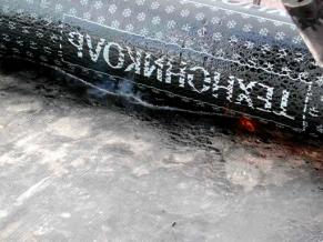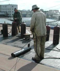 Порядок установки заплаты: · Очистить место повреждения от мусора и пыли. · Вырезать заплатку на 100 мм перекрывающую место повреждения кровельного ковра и скруглить углы на заплатке. · Разогреть место установки заплаты пламенем пропановой горелки и утопить посыпку шпателем в верхний слой битумного вяжущего. · Наплавить заплатку на место повреждения. 5. КОНТРОЛЬ КАЧЕСТВА И ПРИЁМКА РАБОТ.5.1. Контроль качества используемых рулонных материалов возлагается на строительную лабораторию; производства работ - на мастера или бригадира. 5.2. В процессе производства работ устанавливается постоянный контроль за соблюдением технологии выполнения отдельных этапов работ. 5.3. На объекте заводится «Журнал производства работ», в котором ежедневно фиксируются: · дата выполнения работы; · условия производства работ на отдельных захватках; · результаты систематического контроля за качеством работ. 5.4. Качество устройства отдельных слоёв покрытия устанавливается путём осмотра их поверхности с составлением акта на скрытые работы после каждого слоя. Прочность сцепления водоизоляционного ковра с основанием должна быть не менее 1 кгс/см2. 5.5. Обнаруженные при осмотре слоёв приёмочной комиссией дефекты или отклонения от проекта должны быть исправлены до начала работ по укладке вышележащих слоев кровли. 5.6. Приёмка законченной кровли сопровождается тщательным осмотром её поверхности, особенно у воронок, в лотках и местах примыканий к выступающим конструкциям. В отдельных случаях готовую плоскую кровлю с внутренним водостоком проверяют путём заливки её водой. Испытание можно производить при температуре окружающего воздуха не менее +5ºС. 5.7. В ходе окончательной приемки кровли предъявляются следующие документы: · паспорта на примененные материалы; · данные о результатах лабораторных испытаний материалов; · журналы производства работ по устройству кровли; · исполнительные чертежи покрытия и кровли; · акты промежуточной приёмки выполненных работ. 6. ОХРАНА ТРУДА И ТЕХНИКА БЕЗОПАСНОСТИ.6.1. Производство работ по устройству кровельных покрытий с водоизоляционным ковром из битумных и битумно-полимерных материалов ЗАО «ТехноНИКОЛЬ» и ремонту рулонных кровель должны проводиться в соответствии с требованиями СНиП 12-03-01 «Безопасность труда в строительстве»; «Правилами пожарной безопасности в Российской Федерации» (ППБ-01-93). 6.2. К работам по устройству и ремонту кровель допускаются мужчины не моложе 21 лет, прошедшие предварительный и периодический медицинские осмотры в соответствии с требованиями Минздрава РФ; профессиональную подготовку; вводный инструктаж по безопасности труда, пожарной и электробезопасности, имеющие наряд-допуск. 6.3. При работе с оборудованием для наклейки рулонных материалов наплавляемым способом с применением инфракрасного метода необходимо соблюдать требования ГОСТ 12.1.013-78 «Строительство. Электробезопасность. Общие требования», ГОСТ 12.1.019-79 «Электробезопасность. Общие требования и номенклатура видов защиты», ГОСТ 12.1.030-81 «Электробезопасность. Защитное заземление. Зануление». 6.4. Работы по укладке всех слоёв покрытия должны производиться только при использовании средств индивидуальной защиты (СИЗ) в соответствии с «Типовыми отраслевыми нормами бесплатной выдачи специальной одежды, специальной обуви и других средст