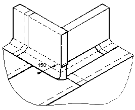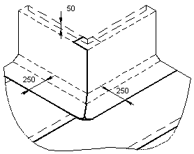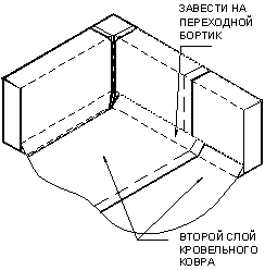 Рис. 29. Примыкание кровельного ковра к парапетной стене с парапетным камнем. 4.7.3. Вариант раскроя и укладки материала во внутреннем угле кровли.